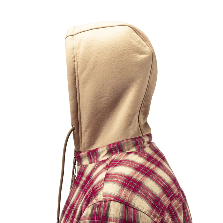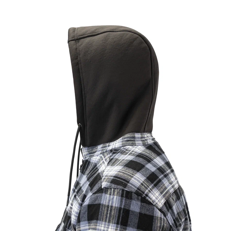 В верхней части рубашки есть несъемный утепленный капюшон.
